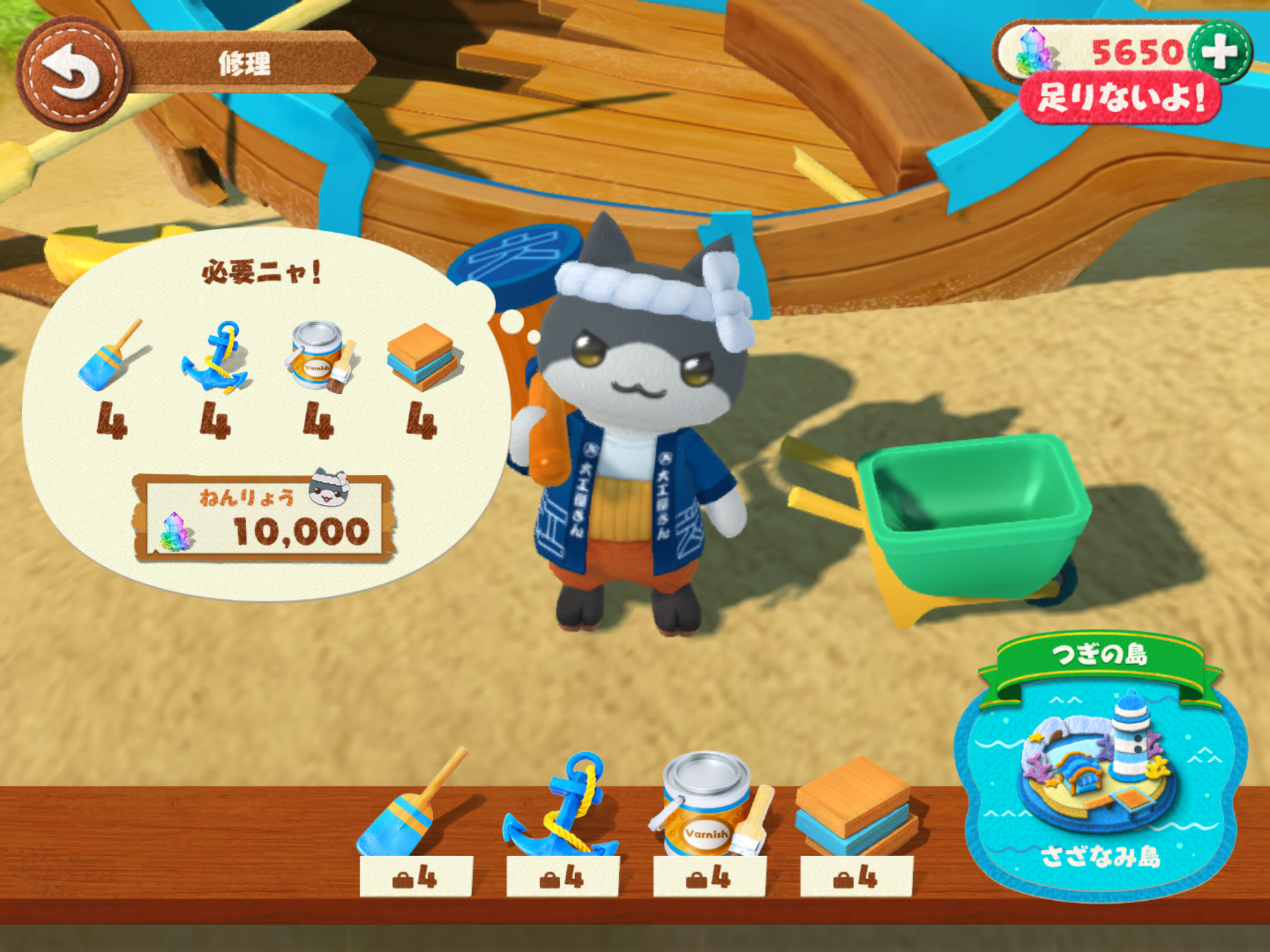 運営さん的にはここが課金ポイントなんだろうけど、こういった自分だけのマイルームを作る系のゲームはゲームを進行させるのに課金するより飾り付け用のアイテムに課金したいって気持ちの方が強い。。。
